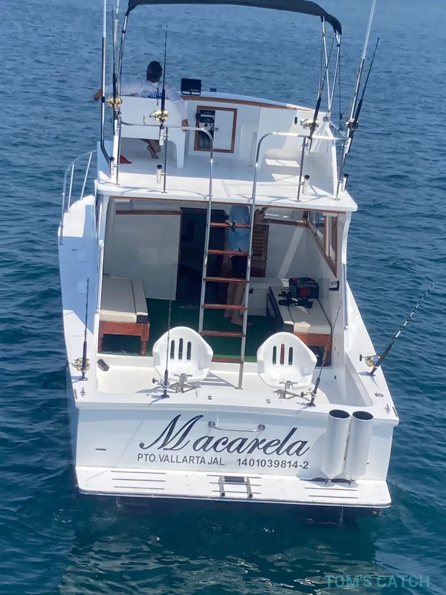 Ga op een onvergetelijk visavontuur in Puerto Vallarta aan boord van deze op maat gemaakte 38 ft flybridge vischarter. De boot is uitgerust met een ruime cabine met banken, een bed en een badkamer voor optimaal comfort. Perfect voor serieuze vissers, voorzien van wedstrijdniveau-uitrusting, inclusief outiggers, 2 vechtstoelen, Tuna Tubes, een levend aasreservoir en eersteklas visuitrusting.