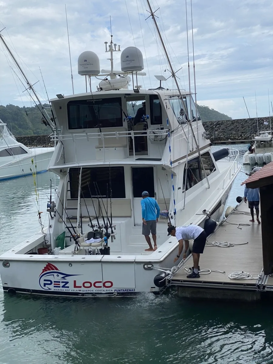 Beleef topklasse sportvissen in Quepos, Costa Rica aan boord van de Pez Loco, een 60-voets volledig uitgeruste visjacht, perfect voor offshore en kustvissen. Deze privécharter biedt een onvergetelijke dag met het vangen van marlijn, zeilvis, geelvintonijn, mahi-mahi, roosterfish en snapper.