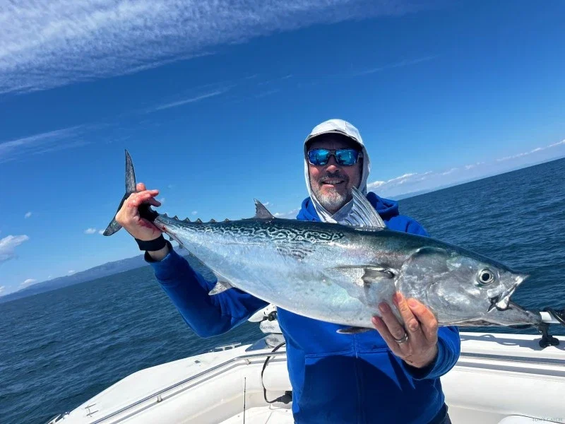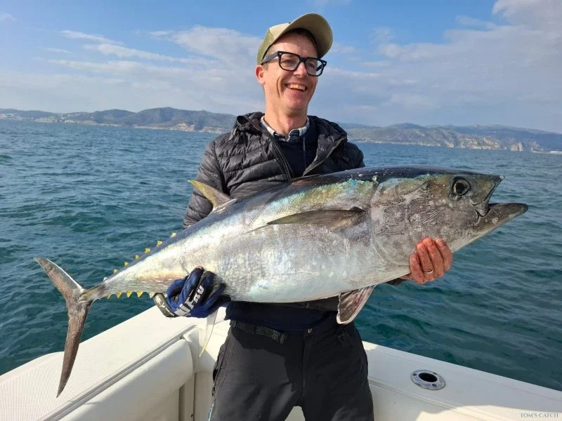 Hele dag (8 uur) slepen of chummen op hoge zee op vissoorten zoals blauwvin tonijn, albacore, skipjack, goudmakreel, speervis, little tunny.