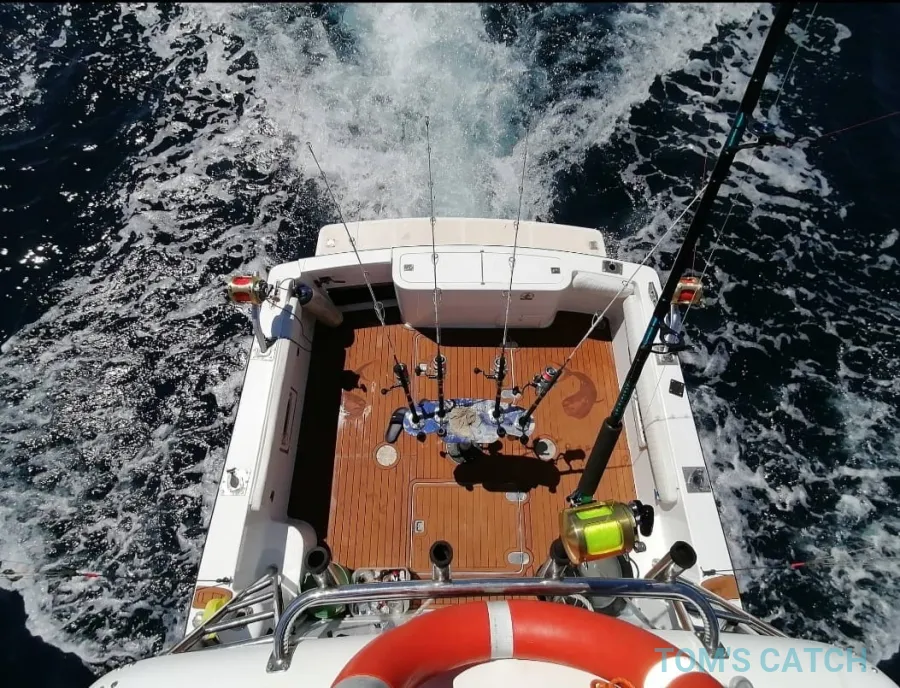 20% aanbetaling aan TomsCatch om de boot vast te leggen, de rest betaal je aan de kapitein: