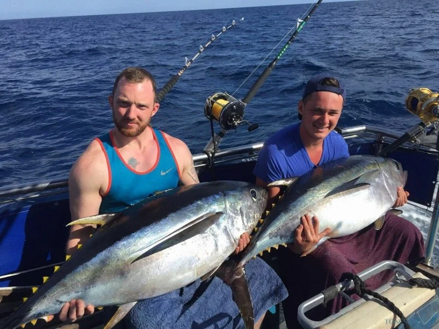 25% aanbetaling aan TomsCatch om de boot vast te leggen, de rest betaal je aan de kapitein: