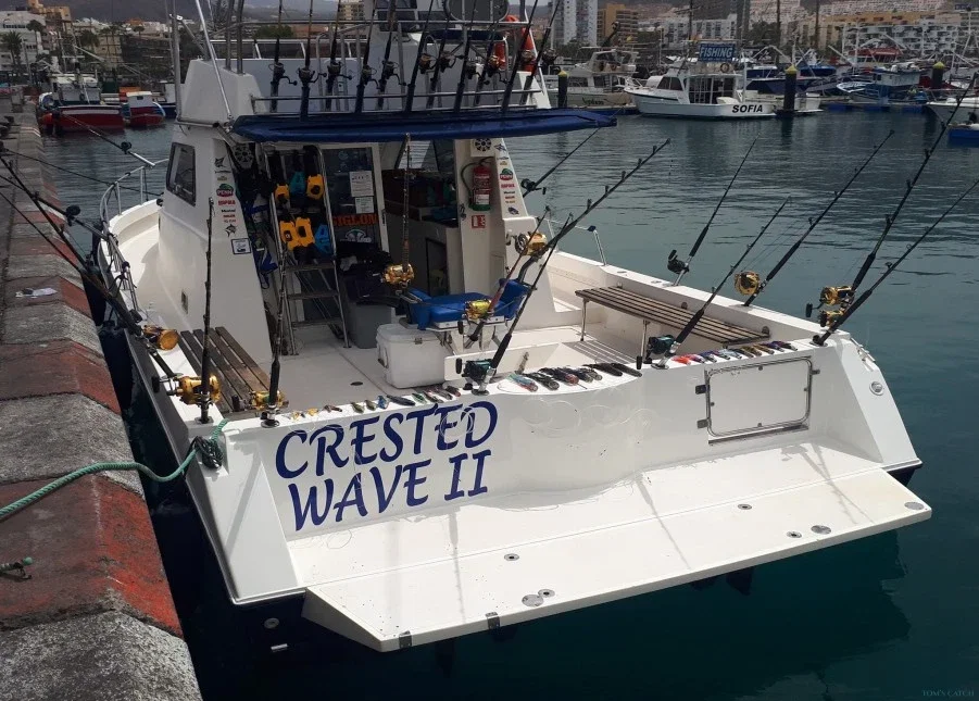 Crested Wave Charter is een charter boot verhuur bedrijf dat zich bezig houdt met het vissen in Los Cristianos, Tenerife. We organiseren vistrips, rondvaarten en we zijn gespecialiseerd in het slepend vissen, chumming, driftend vissen, big game vissen, tonijn vissen, wrakvissen en nog veel meer. Iedereen is welkom aan boord - van beginners tot ervaren vissers, bedrijven en families. Boek onze boot en geniet van een prachtige dag vissen in Tenerife! De Engelse eigenaars van de boot en de Canarische bemanning zÿn allemaal echte visliefhebbers en hebben jarenlange ervaring en kennen de zee hier op hun duimpje. Zowèl voor een beginneling als voor een professionele zeevisser, bent u hier op de juiste plek. De laatste jaren is de leiding bij Mick en John; de "Crested Wave" is origineel opgestart door zijn vader, Terry, die hier voor 30 jaar heeft gevist en een goede en gerespecteerde reputatie heeft voor visexcursie’s.
