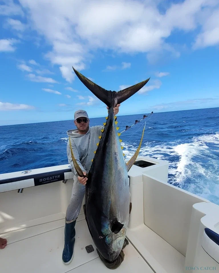 20% aanbetaling aan TomsCatch om de boot vast te leggen, de rest betaal je aan de kapitein: