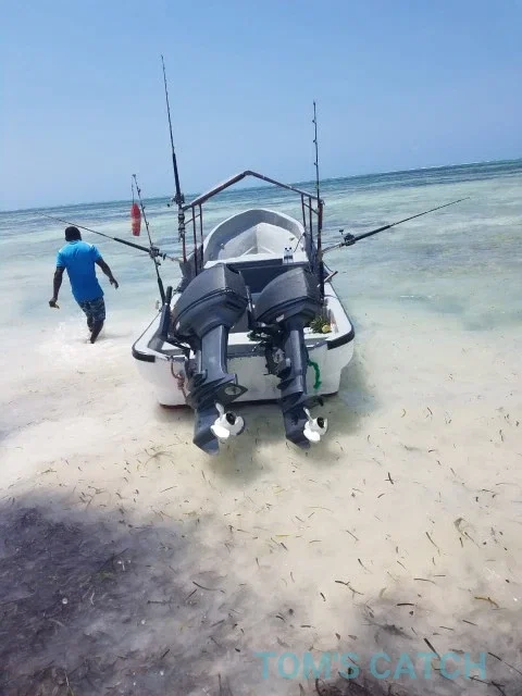 20% aanbetaling aan TomsCatch om de boot vast te leggen, de rest betaal je aan de kapitein: