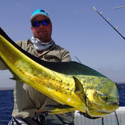 Os Mahi Mahi (Coryphaena hippurus) também são vulgarmente designados por dorado, golfinho ou peixe golfinho. Reconhecem-se pela cabeça romba, pela barbatana dorsal comprida e pela sua coloração viva, azul-escura e verde na parte dorsal e amarela nos lados e na parte inferior.