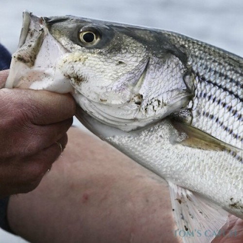 O Robalo Riscado (Morone Saxatilis) é um peixe muito popular que se encontra nas águas atlânticas de Maryland, Rhode Island, Carolina do Sul, Nova Iorque, Nova Jérsia, Virgínia e New Hampshire (Leste da América do Norte). Tem um corpo prateado com riscas escuras que vão das guelras até à cauda. O robalo riscado atinge 9-20 kg (20 a 40 libras) com um comprimento médio de 50-90 cm (20 a 35 polegadas).