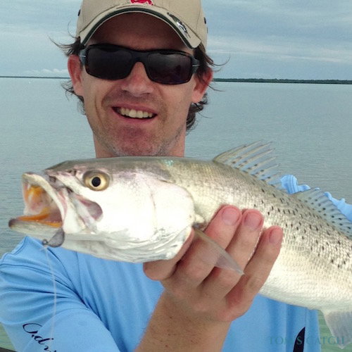 Truta salpicada (Cynoscion nebulosus), também conhecida como truta-das-manchas. É uma captura comum nas águas costeiras do sudeste dos Estados Unidos. A truta salpicada pode atingir 20-36 polegadas de comprimento e 3-18 libras de peso.