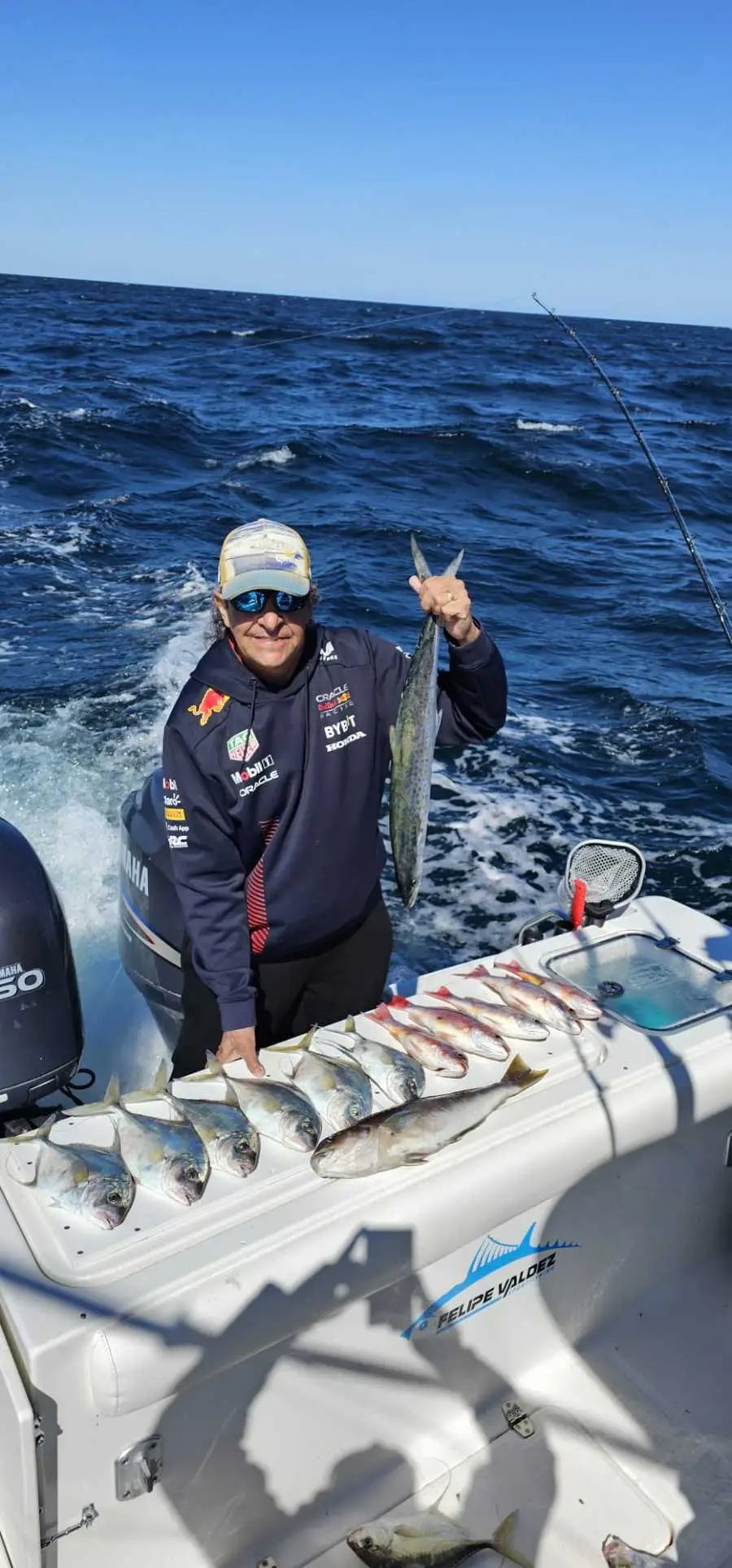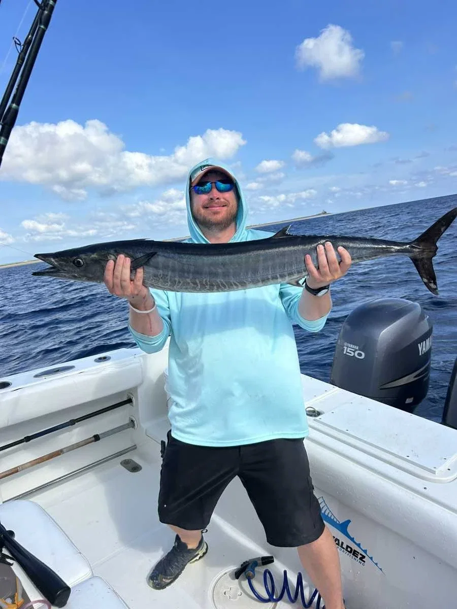 Zorah - Barco de Pesca Desportiva na Costa Rica Zorah é uma máquina de pesca desportiva, totalmente equipada para a pesca grossa e aventuras em alto mar. O Barco possui 2 tanques de isco, 6 tubos de atum e conetividade Starlink para se manter sempre em contacto. Todo o equipamento de pesca é Okuma, incluindo outriggers, downriggers e kites, permitindo todos os tipos de pesca desportiva. Alimentado por dois motores Yamaha 150, o Zorah pode atingir 32 mph, levando-o rapidamente aos melhores locais de pesca. O Barco inclui uma espaçosa casa de banho na consola, uma sombra na proa para escapar ao sol e um pavimento Seadek para maior conforto. A plataforma de proa é perfeita para lançar e lançar o isco, garantindo uma experiência de pesca desportiva excecional. Reserve a sua aventura de pesca em alto mar no Zorah para uma Saída de pesca segura, profissional e emocionante.