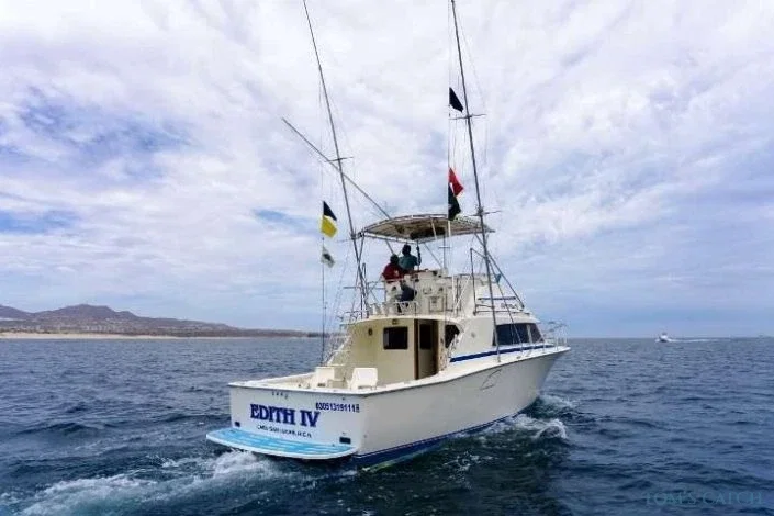 Pesca Desportiva no Cabo San Lucas a bordo do Edith IV - Iate de Pesca Desportiva de 35 Pés | Tom's Catch Desfrute da melhor pesca desportiva no Cabo San Lucas a bordo do Edith IV, um iate de pesca desportiva de 35 pés concebido para proporcionar conforto e desempenho de topo em mar aberto. Equipado com equipamento de pesca profissional e uma tripulação especializada, terá a oportunidade de pescar marlim, mahi-mahi, atum e peixe-galo num dos destinos de pesca mais excitantes do México. Reservar agora com Tom's Catch e viver uma aventura de pesca inesquecível.