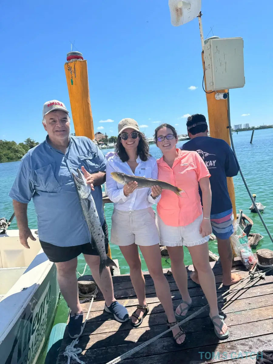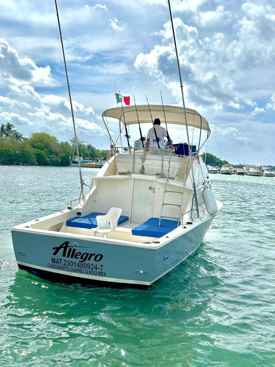Aluguer de Barco de Pesca Allegro em Cancun - Tom's Catch Desfrute de uma experiência de pesca única em Cancun a bordo do Allegro, um barco de pesca de 31 pés perfeito para pequenos grupos. Com Tom's Catch, oferecemos um serviço profissional e de alta qualidade para que possa pescar nas melhores águas das Caraíbas mexicanas. O Allegro está totalmente equipado com tudo o que é necessário para uma Saída de Pesca bem sucedida, garantindo conforto e segurança. Reserve a sua Saída de Pesca em Cancun e viva uma aventura inesquecível no Mar das Caraíbas. Palavras-chave: aluguer de barco de pesca Cancun, barco Allegro Cancun, pesca em Cancun, aluguer de barco de pesca de 31 pés, pesca desportiva Cancun.