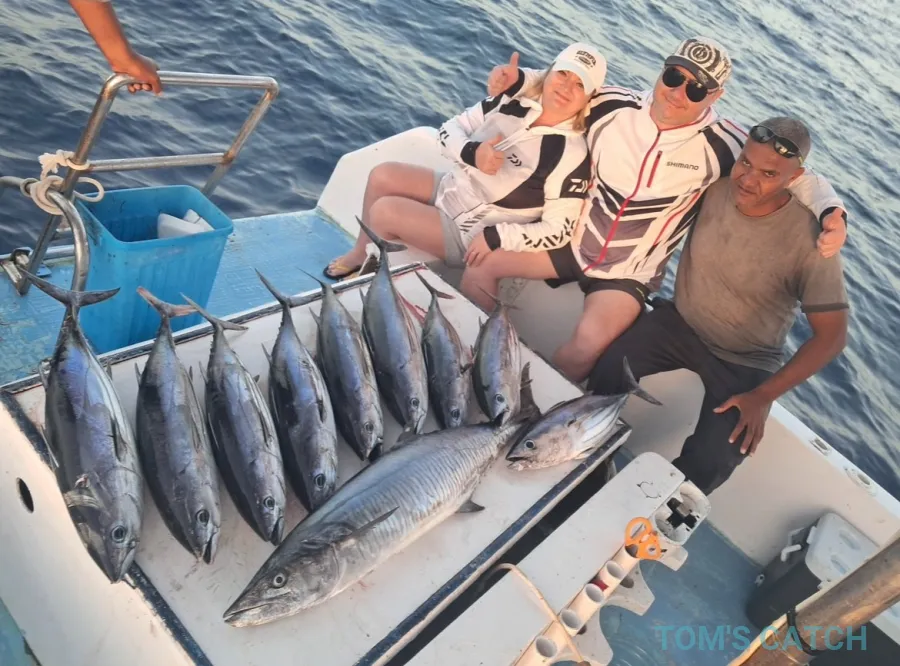 Com mais de 25 anos de experiência, estamos entre os operadores de pesca charter mais experientes de Hurghada. Oferecemos pesca em alto mar, jigging, popping, casting, trolling, pesca grossa, pesca à deriva, pesca nos recifes e pesca desportiva para aqueles que procuram um momento emocionante no Mar Vermelho. Connosco, pode desfrutar de vistas deslumbrantes sobre o Mar Vermelho, experimentar vibrantes recifes ao largo da costa e participar em algumas das mais intensas pescarias de águas azuis disponíveis. Somos a primeira escolha para quem procura os melhores Charters de pesca que Hurghada tem para oferecer. A nossa equipa apaixonada gosta verdadeiramente de apresentar aos pescadores amadores e experientes o mundo da pesca em alto mar. Junte-se a nós numa aventura de pesca inesquecível - garantimos que ficará viciado no momento em que zarparmos. Damos as boas-vindas a indivíduos, famílias, organizações, adolescentes, crianças e jovens adultos para se juntarem a nós para uma maravilhosa e memorável experiência de pesca em alto mar em Hurghada. Oferecemos pacotes muito económicos e a bons preços, concebidos para o seu conforto, conveniência e relaxamento. Sinta-se à vontade para partilhar esta experiência emocionante com outras pessoas. Escolha a opção que melhor se adapta às suas necessidades entre a nossa vasta gama de barcos de pesca limpos e bem conservados, totalmente equipados e prontos para a pesca desportiva. Teremos todo o prazer em recebê-lo a bordo. Proporcionamos uma experiência de pesca profissional, oferecendo um serviço de alto nível para todos - desde os principiantes até aos Pescadores mais experientes. A nossa missão é proporcionar uma aventura de pesca excecional para aqueles que desejam pescar em alto mar, enquanto desfrutam da paisagem espetacular das águas do Mar Vermelho e das ilhas próximas. O nosso foco principal é a qualidade e o serviço, assegurando que se torna sempre um cliente satisfeito e repetido. Oferecemos pesca de corrico e de fundo. Dependendo das preferências dos nossos clientes, ajustamos a quantidade de tempo gasto em cada técnica. Se o objetivo for pescar peixes maiores, damos maior ênfase ao corrico. Se o objetivo for capturar um maior número de peixes, damos mais ênfase à pesca de fundo.