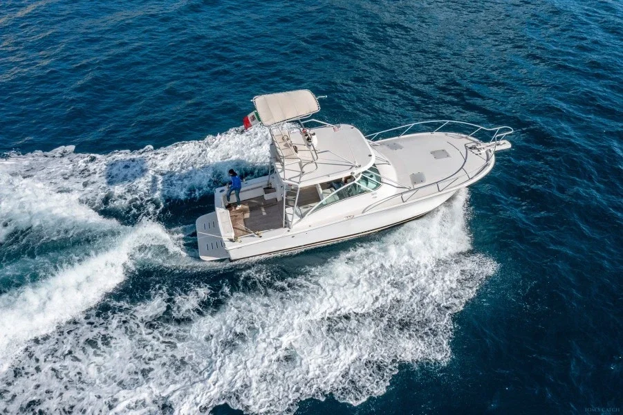 Experimente a derradeira aventura de Pesca no nosso Cabo 50, meticulosamente concebido, localizado nas pitorescas águas de Sorrento, Itália. Concebida para combinar funcionalidade e estética, esta embarcação de 15 metros promete uma viagem de navegação sem paralelo. Com uma proa espaçosa e um para-brisas coberto, o Cabo 50 oferece amplo espaço e conforto para até 12 convidados. No interior, encontrará uma série de comodidades, incluindo uma casa de banho, uma cabine dupla e uma cabine com beliches, garantindo uma experiência confortável e inesquecível nas águas do Mediterrâneo. Quer pretenda relaxar ou embarcar numa viagem de pesca aventureira, este barco responde a todas as suas necessidades. Esta Charter de pesca dispõe de equipamento de pesca de alta qualidade, tanto para a pesca costeira como para a pesca grossa em alto mar. Alimentado por robustos motores Caterpillar 660, o Cabo 50 ostenta uma velocidade de cruzeiro de 26 nós e pode atingir uma velocidade máxima de 31 nós. Originalmente construído em 2012 e recentemente restaurado em 2024, este barco está equipado com as mais recentes caraterísticas e tecnologias para melhorar a sua viagem. A mistura perfeita de elegância e desempenho torna-o a escolha perfeita tanto para marinheiros novatos como para marinheiros experientes. Junte-se a nós neste barco excecional para um dia memorável no mar, explorando a bela costa de Sorrento e além.