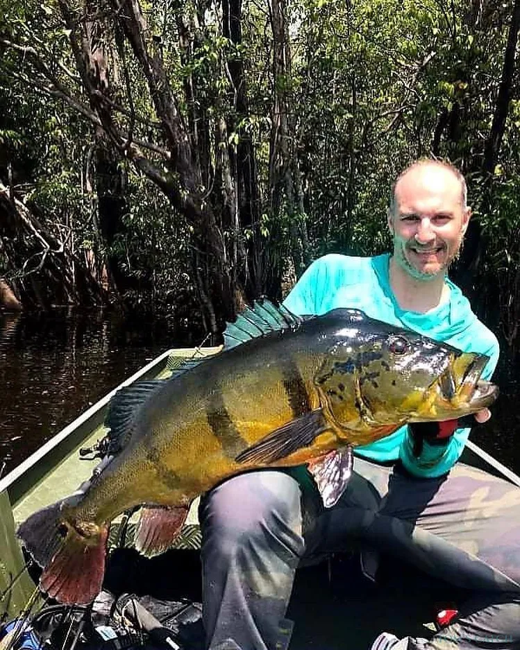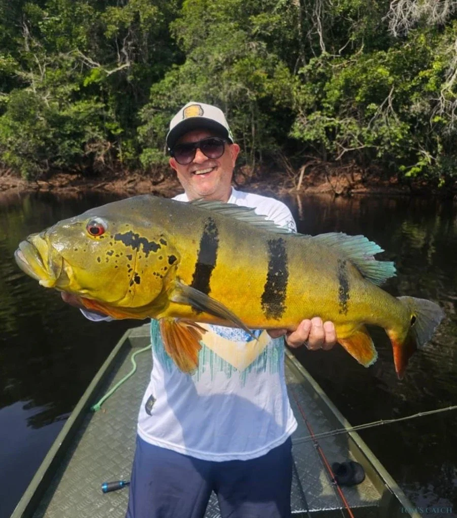 As canoas têm 17 pés de comprimento e são equipadas com dois assentos giratórios, um motor de 25-30HP e um motor elétrico adicional, capazes de navegar em pequenos riachos e lagos estreitos. É nestes locais que se encontram os esconderijos de uma grande variedade de robalos, especialmente o Robalo Gigante. Lute e Pesque o Robalo Gigante na bela Floresta Amazónica. Os maiores robalos do mundo encontram-se em zonas específicas da Amazónia. O recorde mundial foi estabelecido com um Robalo Peacock Gigante de 27 libras e 37" de comprimento.