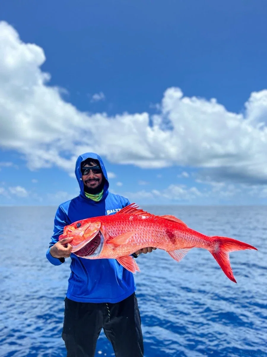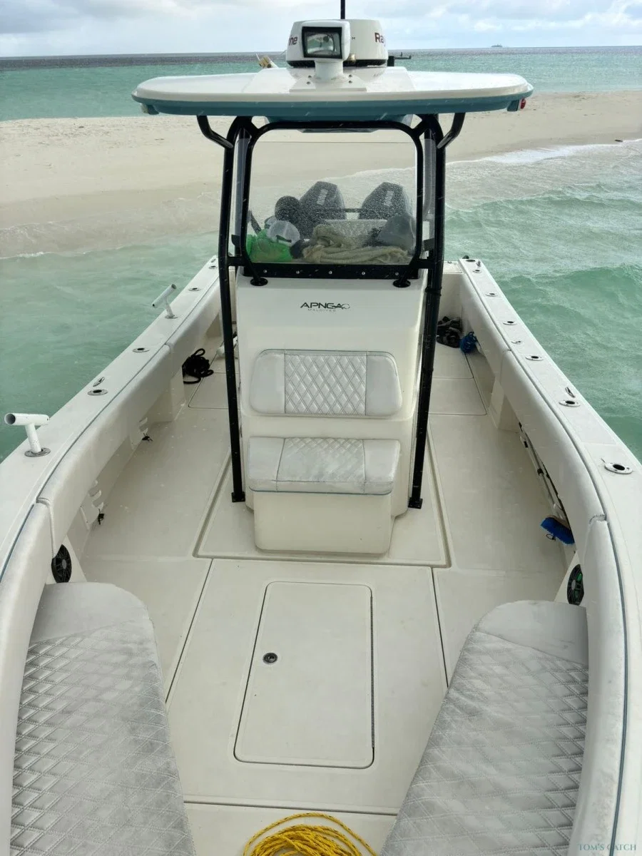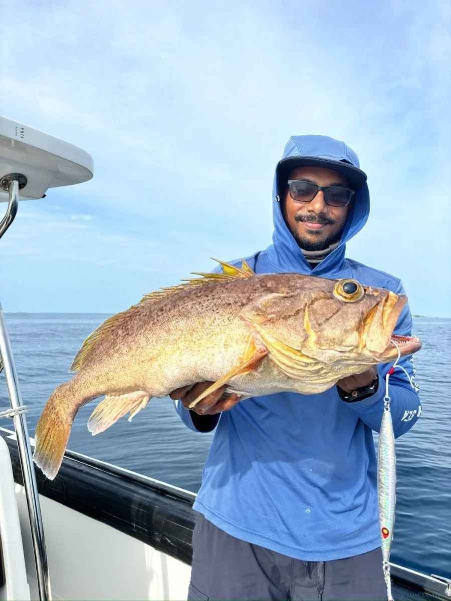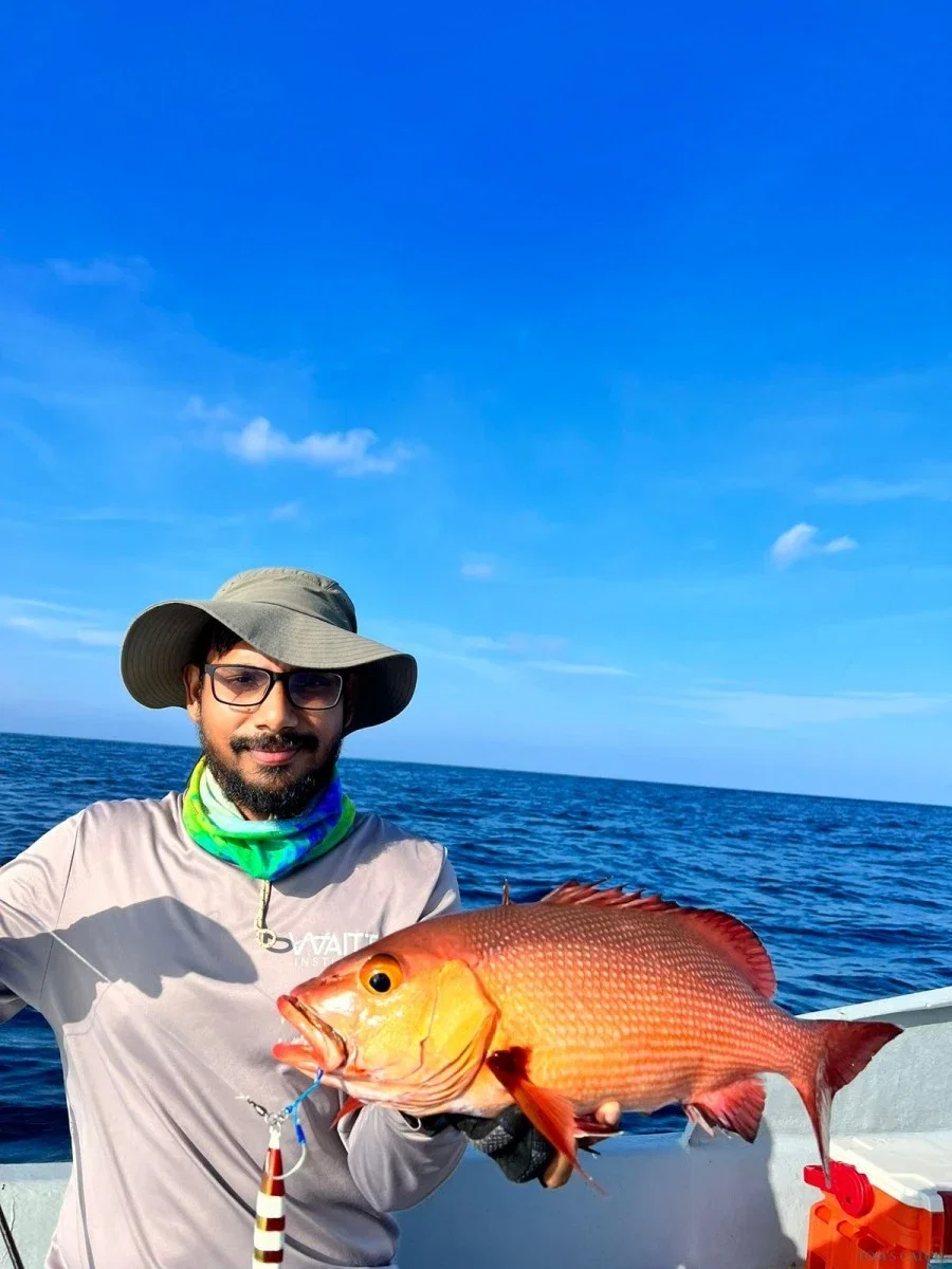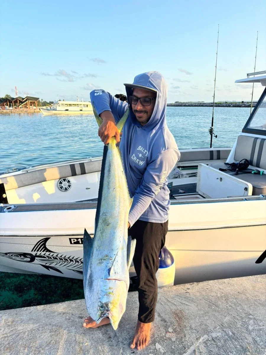 Experiência de pesca desportiva de classe mundial nas águas vibrantes do Atol de Alif Alif do Sul e do Norte, nas Maldivas. Esta região é famosa pela sua rica vida marinha, águas cristalinas e vastos pesqueiros - perfeitos para os Pescadores que procuram dias cheios de ação no oceano. As nossas Saídas de pesca são feitas à medida para uma pesca séria: procure o poderoso atum albacora ao largo, ou teste a sua força com o Trevally gigante utilizando técnicas de pesca com jigging e popping. Os recifes circundantes também oferecem oportunidades excepcionais, produzindo garoupas, pargos e uma variedade de outras espécies de fundo. Seja qual for o seu estilo preferido, a nossa equipa garante que está equipado para um dia inesquecível na água. Suba a bordo do nosso barco modelo 2022 de 28 pés, equipado com dois motores fora de borda Mercury de 225HP para velocidade, fiabilidade e conforto. Com espaço para até seis Pescadores pescarem confortavelmente, desfrutará de uma plataforma suave e bem equipada, concebida para uma pesca desportiva séria. Guiado pelo Capitão Ashwag, um guia experiente e altamente qualificado, pode esperar um conhecimento local especializado, um serviço profissional e uma aventura de pesca nas Maldivas verdadeiramente memorável.