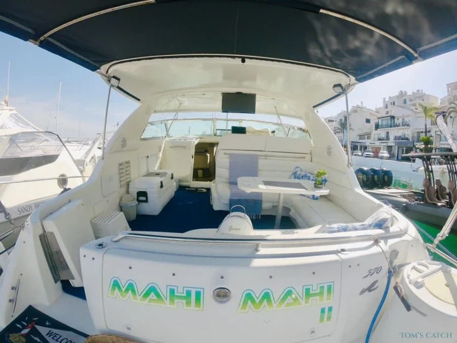 Situado em Puerto Banus, Marbella, este Charter de pesca é excelente para as vossas Saídas de pesca em alto mar com a vossa família e amigos. Tudo está a bordo do nosso Sea Ray 370 Sundancer para desfrutar de um dia maravilhoso de Pesca na Costa do Sol. Para as nossas Saídas de pesca em Puerto Banus, dispomos de um Sea Ray 370 Sundancer com 2 Pescadores Carterpillar de 300 HP. Todos são bem-vindos a bordo das nossas Saídas de pesca - desde os pescadores principiantes aos experientes, passando pelos grupos de empresas e famílias. Reservem agora este barco e desfrutem de um grande dia de pesca no sul de Espanha.