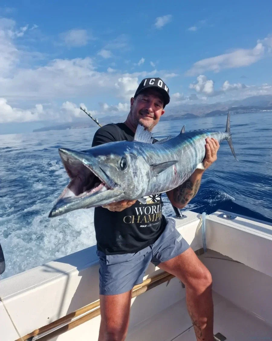 Situado em Porto Rico, nas Ilhas Canárias, este Charter de pesca é excelente para as vossas Saídas de pesca em alto mar com a vossa família e amigos. Oferecemos Saídas de pesca de meio dia ou de dia inteiro e fazemos um esforço extra para que a vossa viagem seja memorável e produtiva. Todos são bem-vindos a bordo dos nossos Charters de pesca - desde Pescadores novatos a experientes, passando por grupos de empresas e famílias. Reservem agora este barco de pesca na Gran Canaria e desfrutem de um grande dia de pesca na Gran Canaria. Descubram a emoção de pescar nas águas cristalinas de Puerto Rico, Gran Canaria, a bordo do "Cavalier". Com o Capitão Hafid a liderar o caminho, este barco Charter de 40 pés possui dois motores de 325 HP para uma experiência de pesca emocionante. Construído em 2005, o Cavalier acomoda confortavelmente até 8 pessoas, tornando-o a escolha perfeita para as vossas Saídas de pesca na Gran Canaria. De maio a outubro, partam em grandes Saídas de pesca de marlin, e de fevereiro a maio, persigam o atum durante a sua Época alta. Para uma maior emoção durante todo o ano, juntem-se ao Cavalier para excursões de pesca de fundo, tendo como alvo uma série de Espécies-alvo como o sargo, o macaco, o bonito, a barracuda, o amberjack e o pargo. Seja qual for a vossa paixão pela pesca, o Cavalier é a porta de entrada para aventuras inesquecíveis nos mares da Gran Canaria.