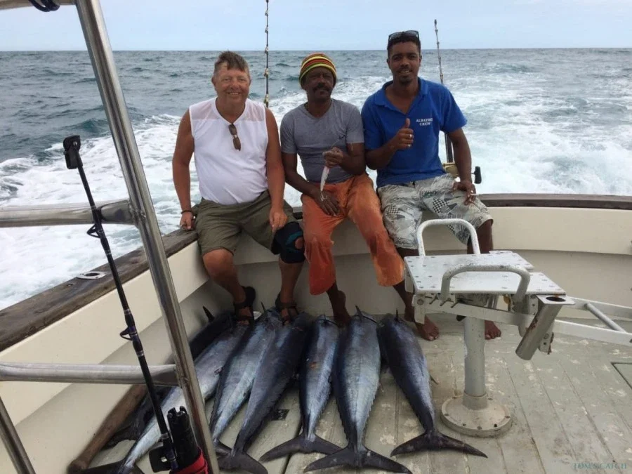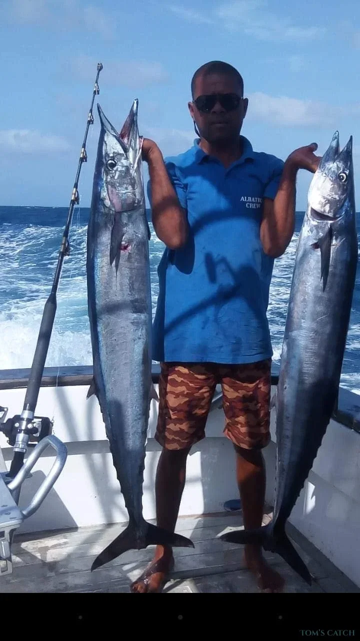 Situado em Santa Maria, Cabo Verde, este Charter de pesca é excelente para as vossas Saídas de pesca em alto mar com a vossa família e amigos. Tudo está a bordo para desfrutar de um dia maravilhoso de pesca ligeira em Santa Maria. Oferecemos Saídas de pesca de meio dia ou dia inteiro e fazemos um esforço extra para garantir que a vossa viagem seja memorável e produtiva. Todos são bem-vindos a bordo dos nossos Charters de pesca - desde Pescadores novatos a experientes, passando por grupos empresariais e famílias. Reservar agora este barco e desfrutar de um grande dia de pesca em Santa Maria. O Capitão Carlos, certificado pela IGFA, é especializado em pesca de alto mar, trolling, pesca grossa, spinning, jigging e muito mais.