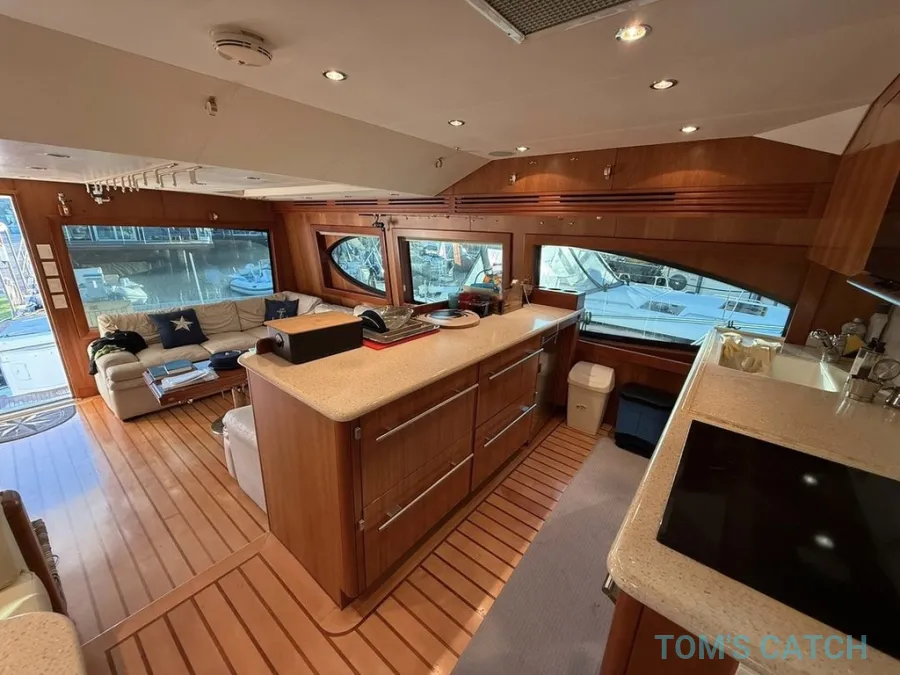 Suba a bordo do Hatteras 64 Convertible e experimente um luxo inigualável e uma construção de topo. Construído para aventuras sérias em alto mar, este iate oferece potência, estabilidade e confiança para travessias em mar aberto ou Saídas de pesca remotas. O seu lendário casco convexo em V profundo e o centro de gravidade perfeitamente equilibrado proporcionam uma viagem suave e controlada, deslizando sem esforço através das ondas com um mínimo de inclinação ou rolamento - quer seja em cruzeiro, a navegar ou ancorado. Desde reuniões elegantes no espaçoso salão a emocionantes corridas a alta velocidade para desfiladeiros em alto mar, o Hatteras 64 proporciona uma experiência refinada e dominante, permitindo-lhe desfrutar de cada momento na água.