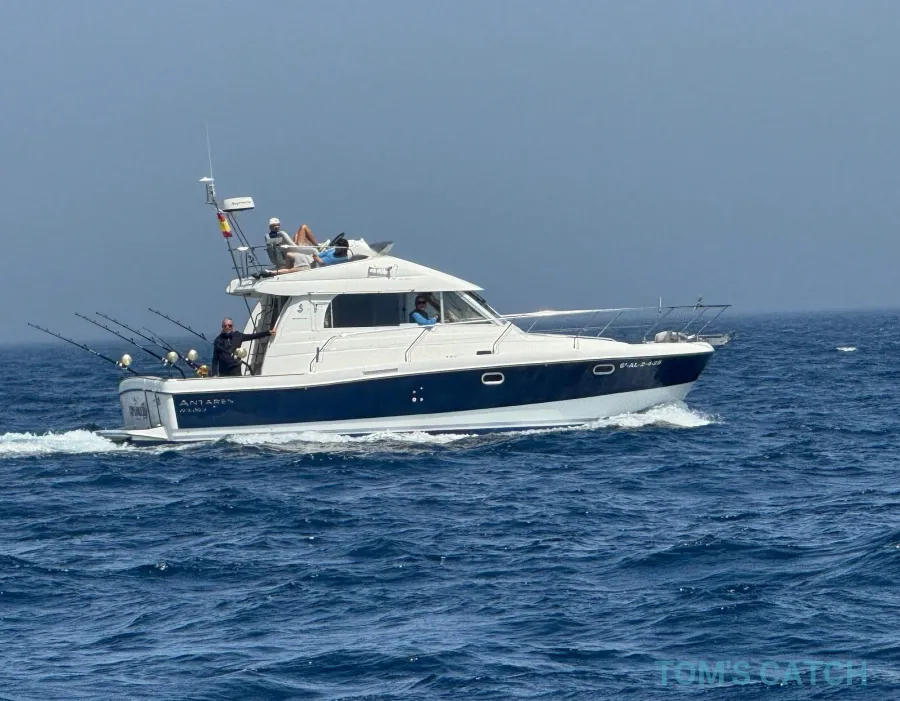 Situada em Tarifa, Cádis, esta Charter de pesca é excelente para as vossas Saídas de pesca em alto mar com aqueles que procuram uma pesca séria de atum rabilho ou jigging. Pode escolher entre a pesca ao atum rabilho, ou a pesca grossa para a captura de marlin branco e marlin azul, ou jigging e Light Jigging para pargos, samas, garoupas, robalos, atuns, javalis, peixes-escorpião, cantarilhos e garoupas. A melhor altura para vir pescar atum no Estreito de Gibraltar é entre abril e outubro, embora a Época de pesca seja julho e agosto. A pesca ao atum é principalmente de corrico, uma vez que a pesca com isco não é permitida e as enormes correntes tornariam isso quase impossível. Victor & Ramon são Pescadores fantásticos e têm o melhor equipamento de pesca para si a bordo do nosso Bénéteau Antares 1080: Shimano Tiagra 80lb e 120lb, Shimano Stella 15000, 18000 e 20000 para spinning e jigging, radar, fish finder, outriggers e muito mais. Quando pescam com jigging, têm como alvo o pargo grande, pargo rosa, amberjack, garoupa e pargos grandes com isco de plástico, inchiku, jigs de lâmina longa, etc. Costumamos colocar alguns tentáculos de lula ou polvo nos anzóis de assistência inchiku, que provaram realmente fazer a diferença. As Pessoas da equipa Tom's Catch testaram isto pessoalmente :-) Tudo está a bordo para desfrutar de um dia maravilhoso de pesca com equipamento ligeiro em Tarifa. Oferecemos Saídas de pesca de 3/4 dias ou de dia inteiro e fazemos um esforço extra para garantir que a vossa viagem seja memorável e produtiva. Todos são bem-vindos a bordo das nossas Charters de pesca - desde os pescadores principiantes aos experientes, passando pelos grupos de empresas e famílias. Reservem agora este barco e desfrutem de um grande dia de pesca em Tarifa. Não esperem mais e venham conhecer-nos.