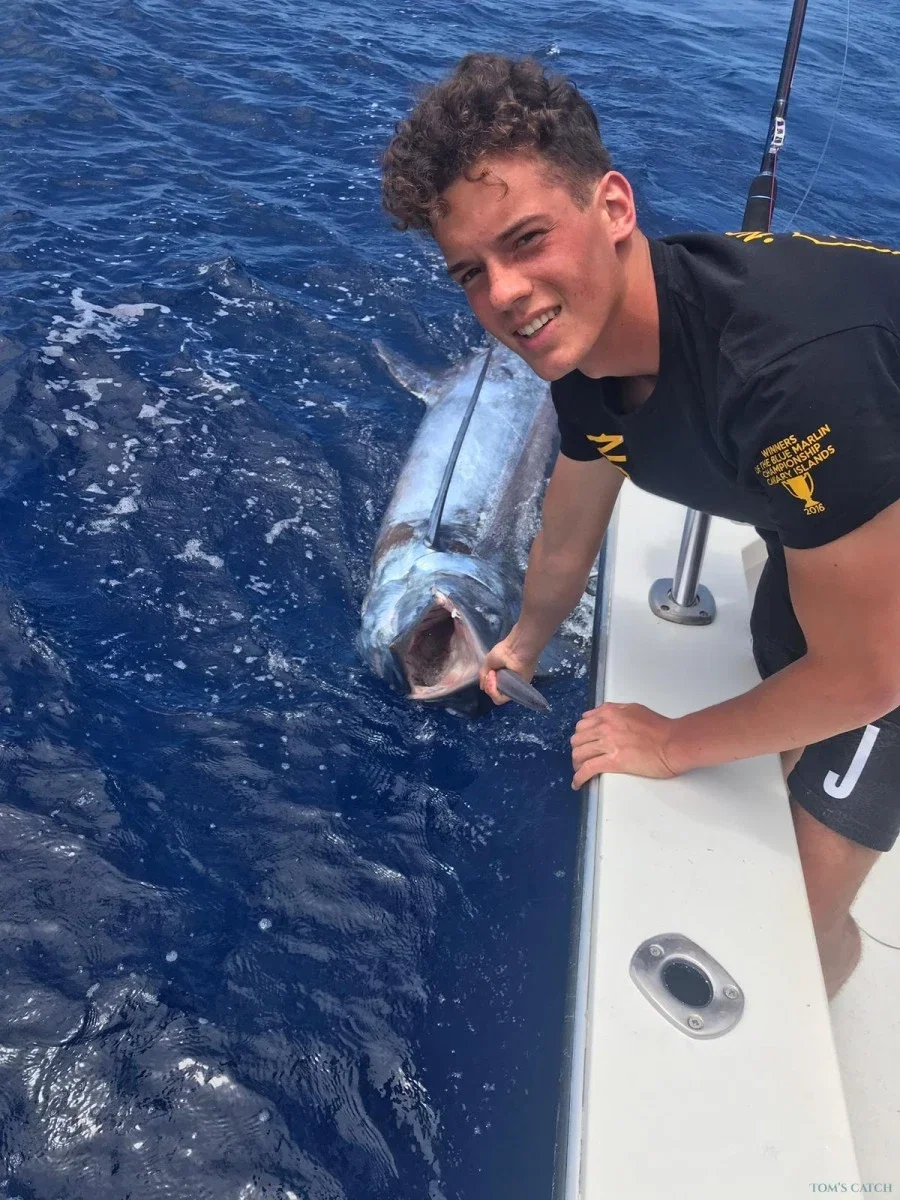 Apanhei um wahoo de 30 kg. Tripulação fantástica.