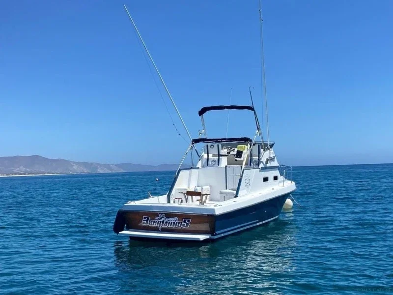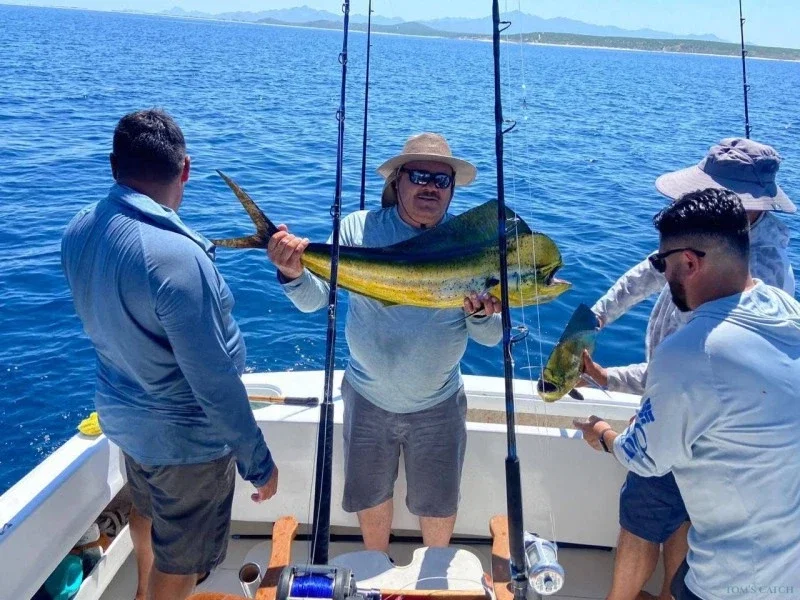 On the 3 Hermanos you will be able to practice different fishing techniques such as trolling, bottom fishing, jigging or spinning, with the possibility of catching iconic species of the area such as dorado (mahi-mahi), tuna, roosterfish, marlin, sailfish, snapper and many more. The Boat has the perfect space and comfort for groups of friends, couples or families who want to combine sport fishing and boating. In addition, you will have the attention of an expert crew that knows perfectly the best fishing spots in Buena Vista. Book now your Fishing trip in Buena Vista with TomsCatch and enjoy a unique adventure on the 3 Hermanos, one of the best Fishing trip in the Sea of Cortez, with cold water and ice always available for your comfort.