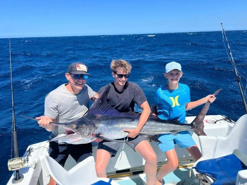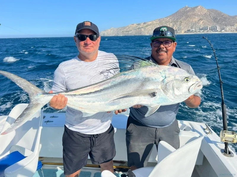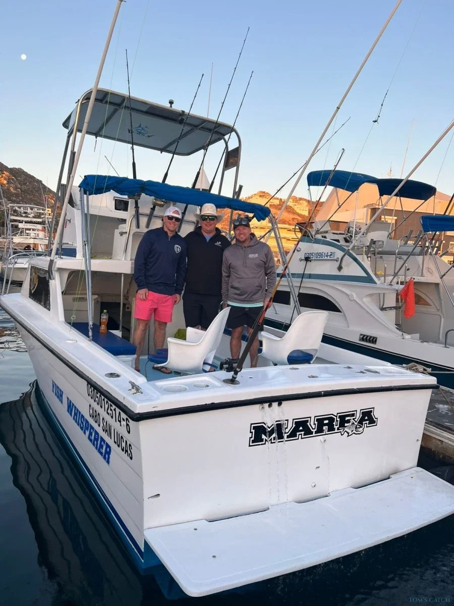 Cabo San Lucas Sport Fishing with the Marea Boat - 28 feet of adrenaline in the Pacific Discover the thrill of sport fishing in Cabo San Lucas aboard the Marea, a 28-foot Boat perfectly equipped to offer you an unforgettable experience in the heart of the Mexican Pacific. With Tom's Catch, you'll experience an unforgettable day of fishing as you venture into one of the world's most popular deep-sea fishing destinations. The Marea is ideal for both experienced Anglers and beginners who want to try their luck on the high seas. This Boat has the Fishing equipment necessary to catch species such as sailfish, marlin, dorado (mahi-mahi), tuna, wahoo and more. In addition, its size and maneuverability make it perfect to move with agility between the best fishing spots in Cabo. With trips tailored to your needs (half day or full day), and a professional and knowledgeable crew of the waters of Cabo San Lucas, you will enjoy a high quality service with total security. Whether you are traveling with family, friends or as a couple, the Marea is waiting to take you on a unique adventure. Booking your Cabo San Lucas Fishing charter experience with Tom's Catch and get ready for a day full of excitement, nature and great catches.