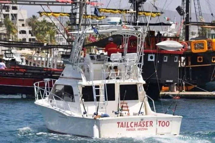 Sportfishing in Cabo San Lucas aboard the Tailchaser Too - 35-foot Sportfishing Yacht | Tom's Catch Experience the thrill of sport fishing in Cabo San Lucas aboard the Tailchaser Too, a 35-foot Sportfishing yacht designed for comfort and performance on the high seas. With high quality fishing equipment and an expert crew, you will have the opportunity to catch marlin, dorado, tuna and roosterfish in one of the best fishing destinations in Mexico. Book now with Tom's Catch and enjoy an unforgettable Fishing Experience.