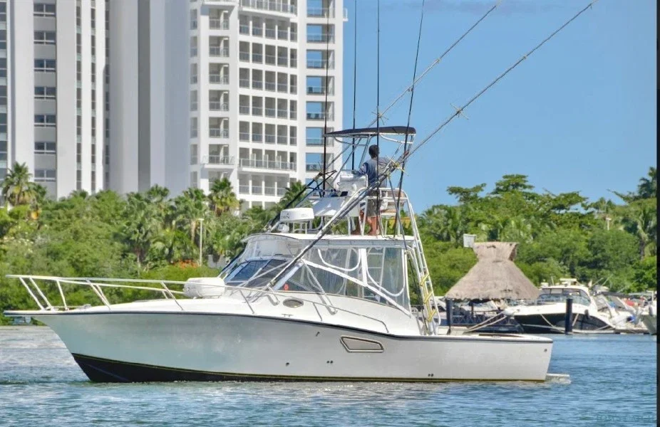 The Albemarle 35' is your ticket to the breathtaking waters of Cancun. Captain Miguel will be your guide, giving you access to years of knowledge and experience. Depending on conditions, you could hook a sailfish, blue marlin, white marlin, mahi-mahi, big barracuda, black grouper, gray triggerfish, bonito, black tuna, amberjack and many more. On these trips, you can expect to troll and bottom fish using light or heavy tackle. Planning a family adventure? Kids are absolutely welcome! Children must wear life jackets, so be sure to ask if there is one of the right size on board. Snacks never hurt to avoid anyone getting cranky from an empty stomach! Captain Miguel operates an Albemarle 35' flybridge that can carry up to 6 passengers. It is equipped with outriggers, downriggers, a fighting chair and all the essentials. On board there is a restroom for your convenience. In addition, this boat is wheelchair accessible. Captain Miguel has rods and reels for you, along with lures. Live bait is available, but you should ask the Captain if you'll be fishing for it yourself. A first mate will be there to make sure everything runs smoothly. Mates usually work for gratuities, and it is customary to offer them one. Before boarding, you will be required to purchase a local fishing license for all members of your party. This information is usually available online, or you can ask the Captain. Some Species may be protected or require a tag to be retained, so make sure you know what to expect. Don't forget to bring sunscreen (not spray) and sunglasses. Drinks are included, at no additional cost. Alcohol is allowed in moderation, just avoid hard liquor and glass bottles. Lunch is included, just contact us for more information, especially if you have dietary needs. Now, hop on the Albemarle and get ready to snag a good one.
