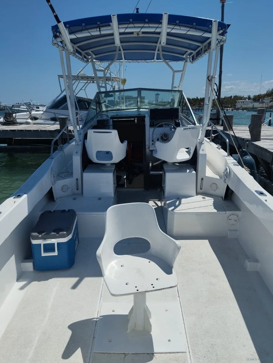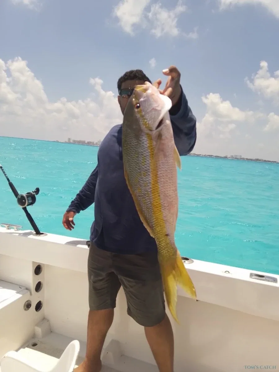Sport Fishing in Cancun aboard a 25 Foot Boat Live an authentic Sport Fishing Experience in Cancun aboard a 25 foot Boat, ideal for small groups looking for comfort and direct contact with the Caribbean Sea. This agile and well-equipped boat is perfect for exploring the rich marine life surrounding the area. During the Trip, you will have the opportunity to fish for species such as dorado, tuna, barracuda and other varieties that inhabit these warm waters. Whether you're an amateur or an experienced Angler, the Captain and his crew will guide you to make the most of your day. The privileged location of the port allows quick access to Cancun's best fishing spots, maximizing your time on the water. 💡 Please note that an additional $10 USD per person dock fee applies, payable on the day of the tour. Book your fishing adventure with Tom's Catch and get ready for an unforgettable day in one of the most outstanding destinations in the Mexican Caribbean.