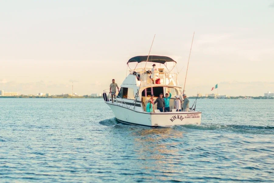 Sportfishing in Cancun aboard the Kin Kay - 33-foot Sportfishing Boat | Tom's Catch Embark on an unforgettable sportfishing adventure in Cancun with the Kin Kay, a 33-foot Sportfishing boat designed to catch species such as marlin, sailfish, dorado and tuna. With high quality equipment and an expert crew, you will enjoy the best experience on the high seas. Booking now with Tom's Catch and get ready for action.