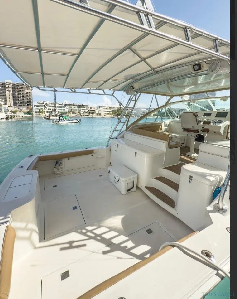 Piru Fishing Boat - Toms Catch in Cancun | Unforgettable Fishing Experiences Discover the best fishing experience in Cancun aboard the Piru boat, an impressive 42-foot yacht operated by Toms Catch, experts in sport fishing trips. Perfect for both amateur and professional Anglers, the Piru offers comfort, space and first-class equipment to ensure a successful fishing trip in the crystal clear waters of the Mexican Caribbean. Located in Cancun, the Piru boat is equipped for deep-sea fishing trips, ideal for catching species such as marlin, dorado, sailfish, tuna and more. Whether you are looking for a private fishing trip or a group adventure, Toms Catch offers a personalized service with expert guides who know the best fishing spots in the region. Booking your fishing trip in Cancun with Toms Catch and live the thrill of sport fishing from the comfort and safety of the Piru Boat, don't miss this opportunity to catch big trophies and enjoy a unique maritime experience!