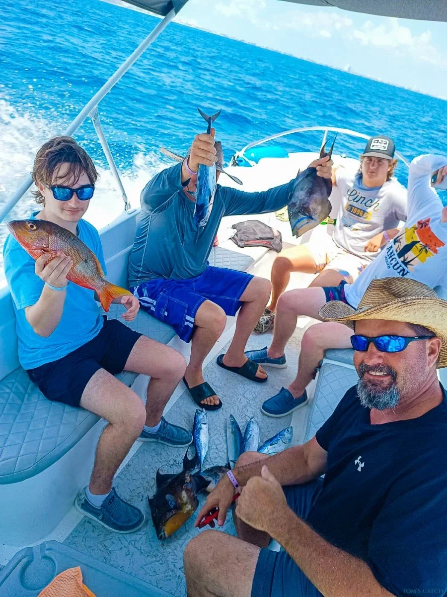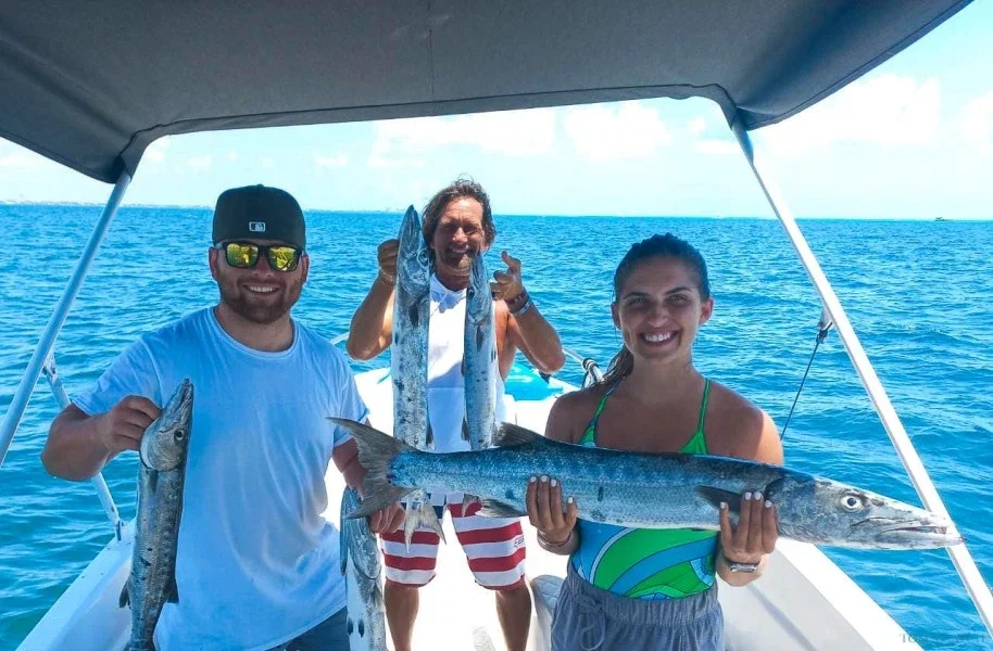 Yemaya Fishing Boat - 26 Feet of Adventure in Cancun Welcome aboard the Yemaya, your gateway to fishing adventures in the heart of the Caribbean Sea. Our 26-foot Fishing Boat is perfect for groups of up to 6 People, ensuring an intimate and relaxed atmosphere for a unique deep sea fishing experience. Equipped with state-of-the-art fishing technology, from high-end fishing rods to advanced sonar, the Yemayá maximizes your chances of success on every outing. With an experienced crew that knows the Cancun waters to perfection, we are committed to providing you with a safe and exciting adventure. The Yemaya will take you to the depths of the Caribbean Sea, where you can fish for coveted species such as marlin, yellowfin tuna and dorado. Starting from the Puestas del Sol Marina, a privileged location that puts us in the best fishing spots in Cancun. Whether you are an experienced angler or a beginner, Yemaya is the ideal choice to explore the crystal clear waters of Cancun and experience the thrill of deep sea fishing. Our goal is to provide you with an unforgettable experience in a luxurious and comfortable environment, so don't miss the opportunity to join us and fish in style in Cancun! Booking your Fishing tour now and discover why we are the preferred destination for deep sea fishing enthusiasts.