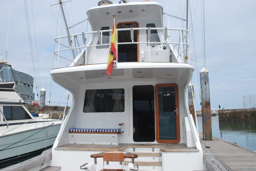 20% deposit to TomsCatch to block the boat, balance to the skipper: