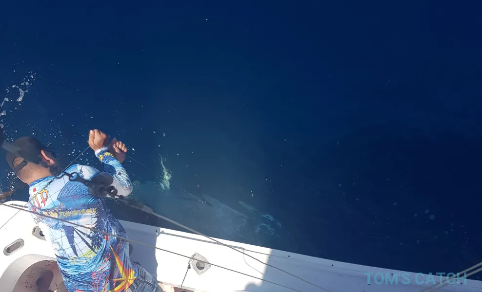 10% deposit to TomsCatch to block the boat, balance to the skipper: