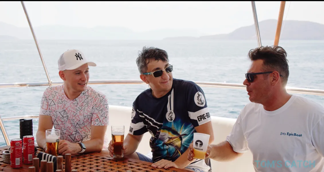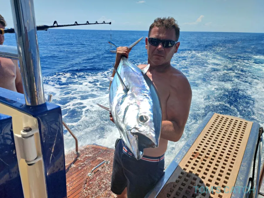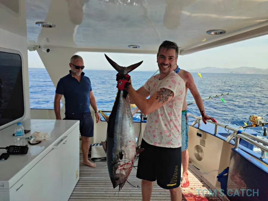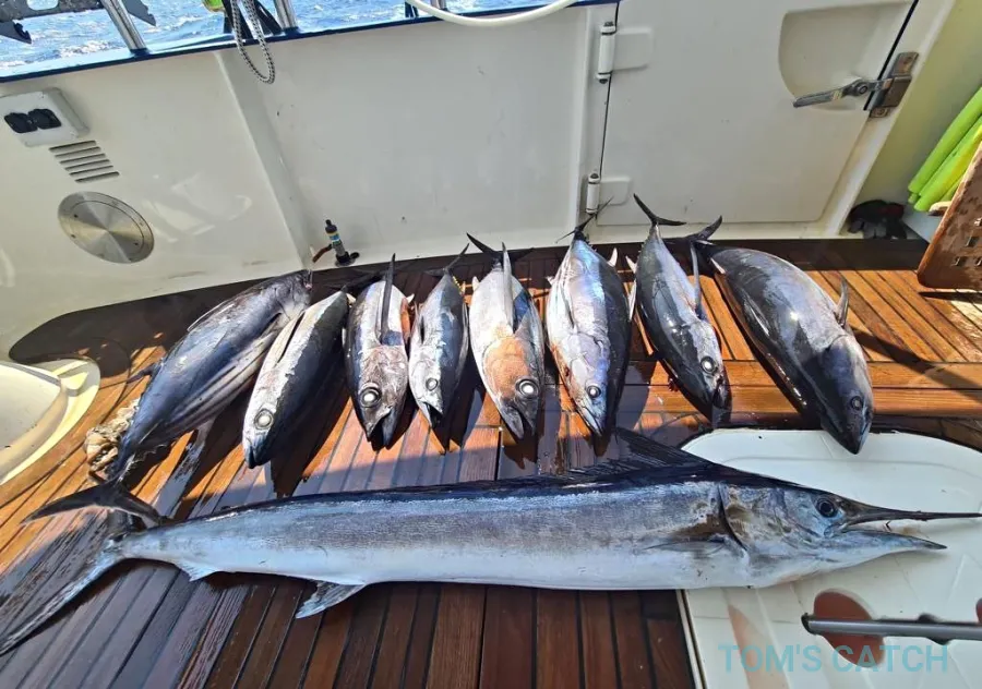 10% deposit to TomsCatch to block the boat, balance to the skipper: