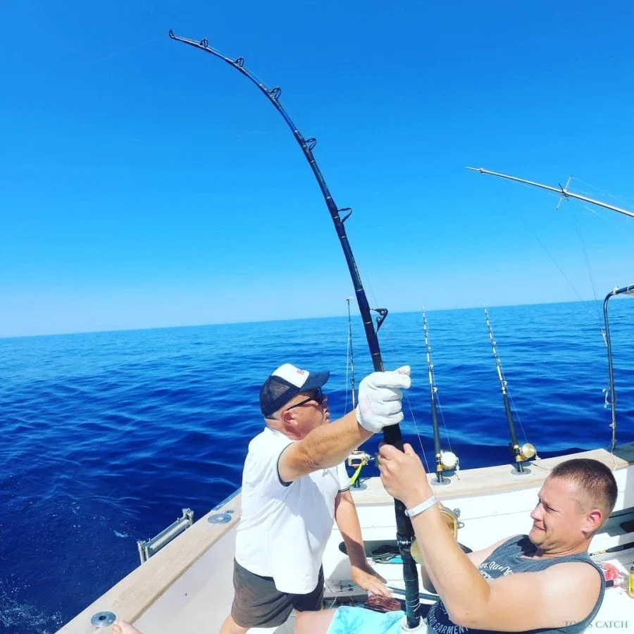Starting from 1984 father and son fishing trips from the port of can picfort (muro beach). We have won big game fishing tournaments for many years. 6 years ago we started to work professionally with "Royal Charters Mallorca" and we do all kinds of excursions, family trips (all over the islands) and - of course - fishing trips, with all varieties: Trolling, bottom fishing, Big Game, etc... Fishing trips are done with the Bertram 42 sport fishing yacht with a length of 11 meters, a beam of 3.80 and 2 engines caterpillar 380kw, very well equipped for fishing with all the Shimano material. The Boat has radar, depth sounder, gps. It has two cabins where you can rest after a fabulous day of Fishing and of course a magnificent and wide stern to fish the best specimens! We have a Captain (Joan), a port skipper (Martí) and a sailor!