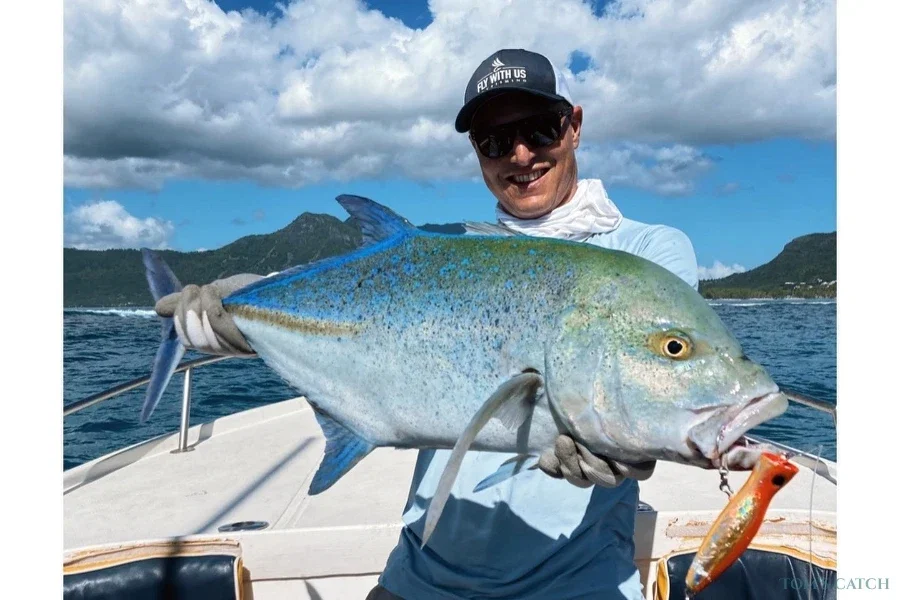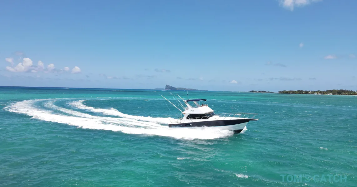 50 Ft Boat Features Capacity: Up to 6 People Engines: 2 x 600HP, ideal to quickly reach the best fishing spots Safety Equipment: Life jackets, first aid kit, emergency flares AFT deck with 3 fighting chairs: 1 main and 2 auxiliary, designed for comfort while fishing Professional Equipment Shimano Tiagra and Penn International rods and reels, for high quality performance Lures, koanas, gaffes, binoculars, VHF radios and depth sounders to ensure the best experience Additional equipment for catching and keeping your catch With our 50-foot Boat and a professional crew at your disposal, we are ready to offer you an unforgettable fishing adventure in the cleanest and most exciting waters of Mauritius. Booking your Fishing Experience today and get ready to live a unique day!