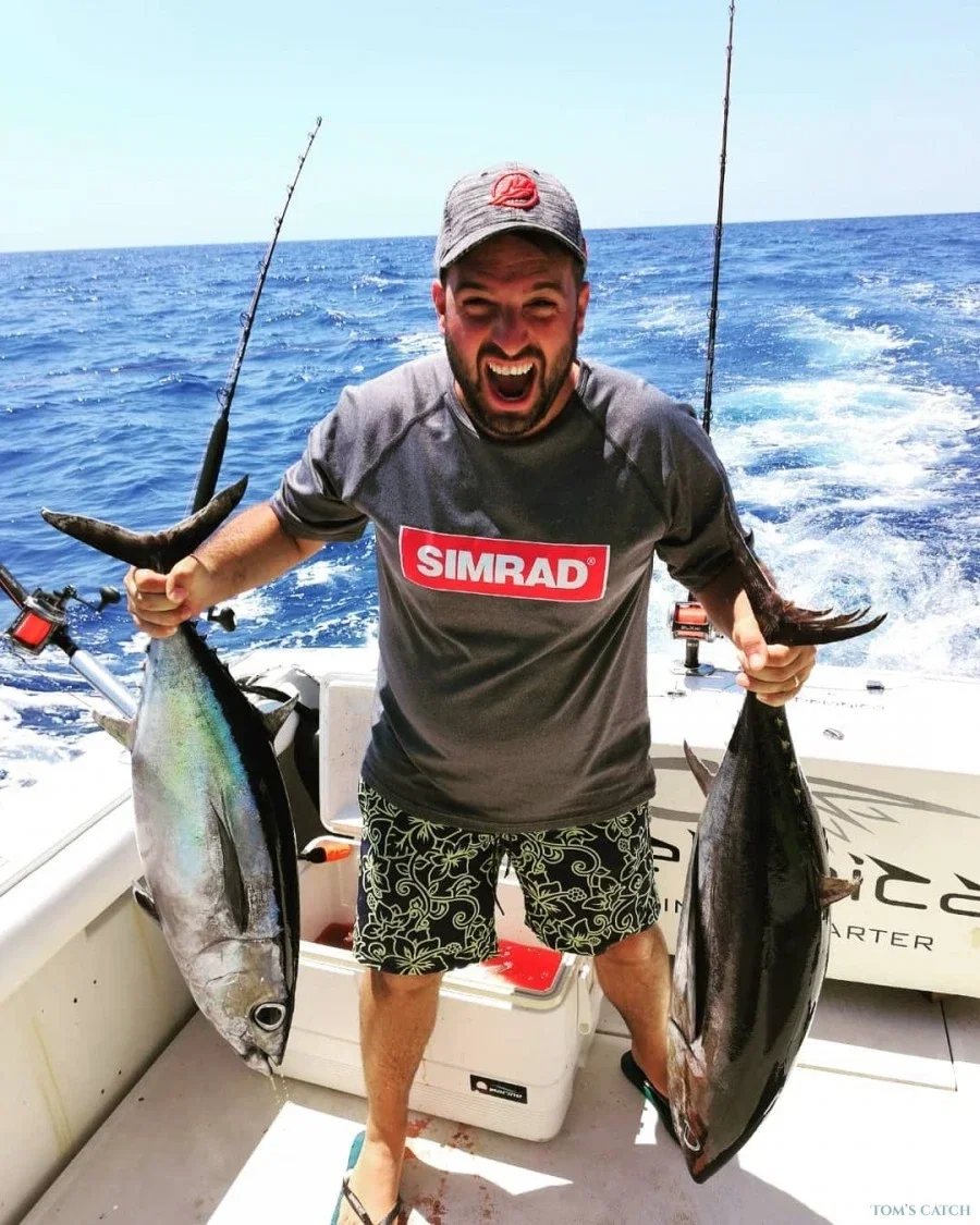 20% deposit to TomsCatch to block the boat, balance to the skipper: