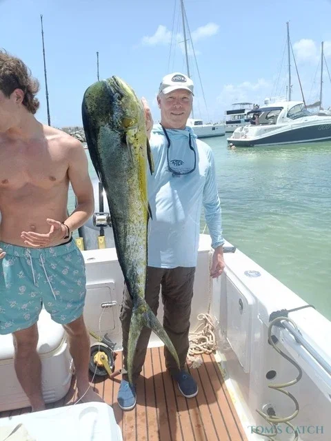 This 35-foot Wellcraft accommodates up to 9 guests and is equipped with two powerful 300HP Yamaha engines. On board you will find the latest navigation electronics and complete fishing equipment, including fighting chair, live bait tank, outriggers, downriggers and much more. The deep waters of the area are ideal for catching great sport fishing species such as billfish, tuna, sailfish, wahoo, dorado (mahi-mahi), barracuda, amberjack and many more. The Captain and his crew will be happy to help you with equipment and technique. And if regulations permit, they will clean your catch for free for you to enjoy after the trip. Fishing equipment, as well as drinks and snacks, are included in the Price. You only need to bring sunscreen, comfortable clothes and your camera well charged: you will take unforgettable memories with you!