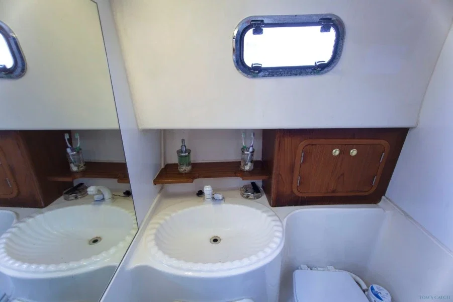20% deposit to TomsCatch to block the boat, balance to the skipper: