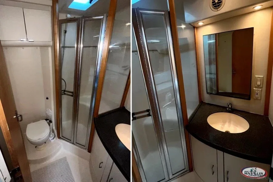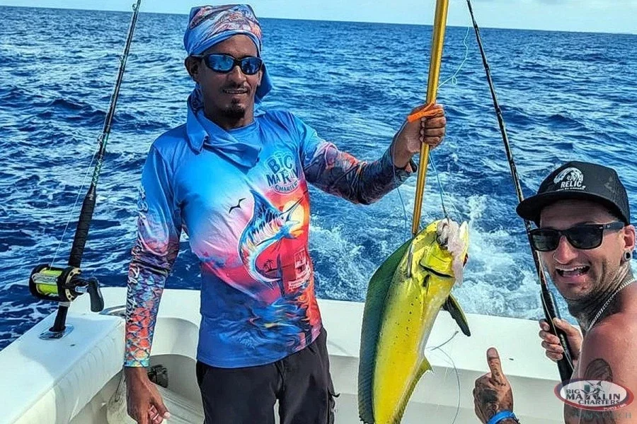 The Blue Sky is a 36-foot "Luhrs" SX Open Express Sport Fishing Boat, made in the USA and perfectly suited for unforgettable fishing adventures in the stunning waters of Punta Cana, Dominican Republic. This boat is designed for comfort and performance, making it the ideal choice for groups of up to five Anglers. The spacious deck is equipped for offshore Fishing, with a fighting chair, long outriggers and two large tackle boxes, ensuring you're ready to catch trophy fish. For those looking to relax, the flybridge features a comfortable seating area with a large settee, Bluetooth marine radio and state-of-the-art navigation equipment. Inside, the cozy cockpit creates the perfect environment for friendly conversations or a short break. Two beige leather sofas face each other, providing ample space to relax, while the separate toilet and shower ensure your comfort during the trip. There is also a large cooler with ice available to keep your drinks cool as you enjoy the day. The Blue Sky specializes in deep sea trolling for some of the Caribbean's most exciting species, including marlin, mahi mahi, wahoo, sailfish, tuna and barracuda. Whether you are an experienced Angler or new to the sport, this Boat and its experienced crew promise you an unforgettable adventure. Booking your Fishing trip today and experience the thrill of fishing in one of the most beautiful destinations in the world aboard the Blue Sky.